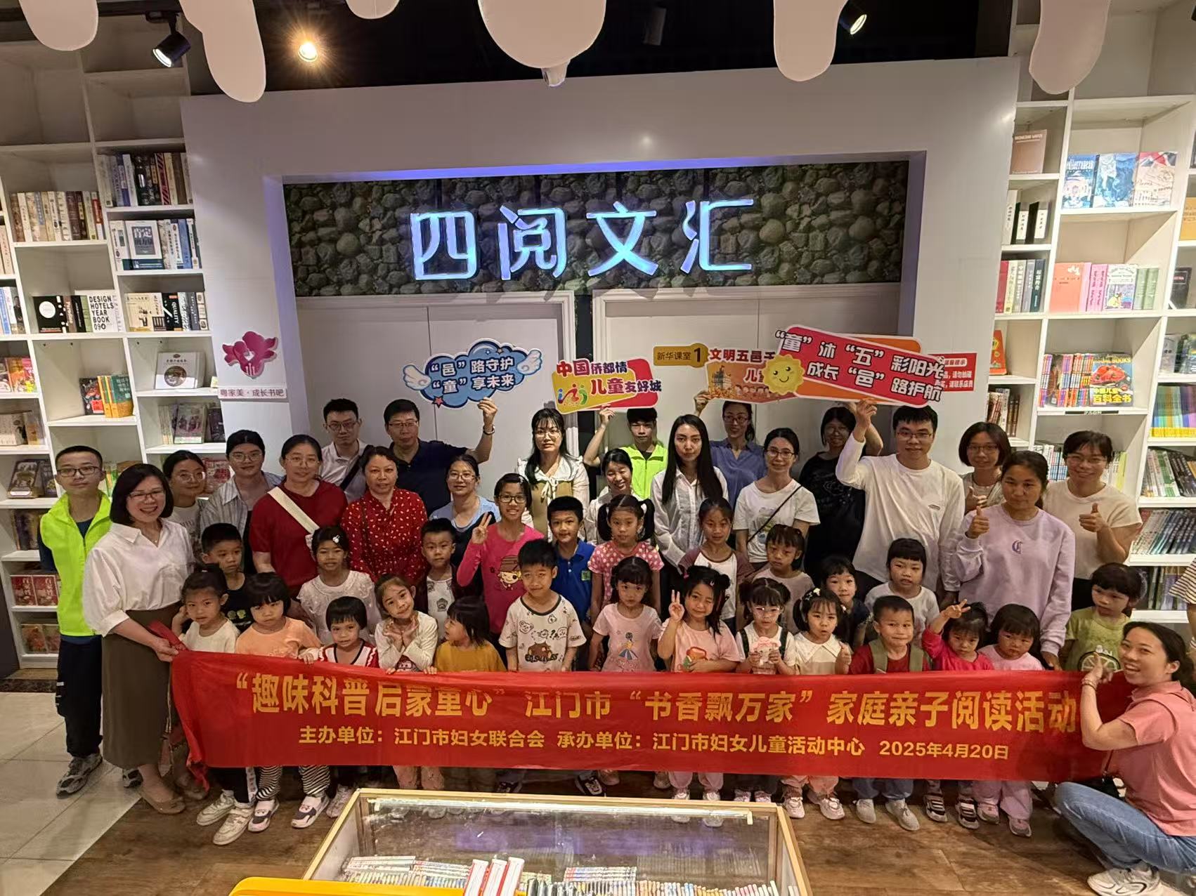 4月20日上午,由江门市妇联主办,江门市妇女儿童活动中心、江门新华书店协办的“趣味科普 启蒙童心”江门市“书香飘万家”家庭亲子阅读活动和“故事趣旅 ‘瞳’梦飞扬”江门市青少年讲故事大赛在江门市购书中心举办。